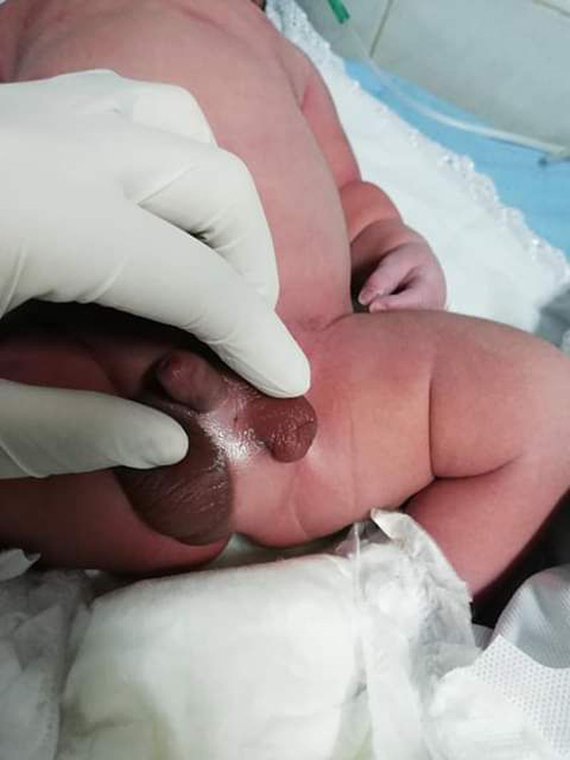 36 weeks newborn with bifid scrotum for karyotyping and further radiological assessment..