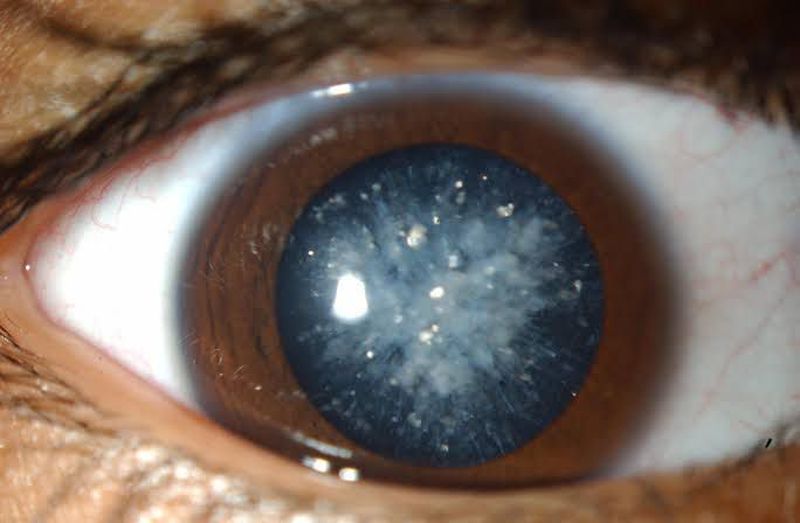 Snow storm cataract aka diabetic cataract.