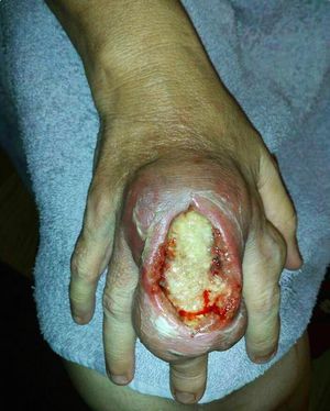 Your worst nightmare, this photo shows a brown recluse spider bite of the finger after 10 days! As unbelievable as this might sound, this person got bitten by a spider, but little did he know that it had been a brown recluse spider, whose venom is known to destroy cartilage, as well as soft tissue and skin. Leaving it untreated, allowed the venom to cause this lesion. This venom contains a rare protein that can cause a lesion, or a much less common, but more dangerous, systemic reaction in humans, depends on the amount of venom injected. Reactions due to brown recluse spider bites are a fever, the chills, itching, going into shock, vomiting; but the most common response is inflammation that after one to two days can develop into a "dark lesion" surrounding the bite site. The blackening, or necrosis, of the skin is dead skin cells, evidence of the immune system's efforts to prevent spread of the toxin by preventing blood flow to the affected area. It can be also dry, blue-gray or blue-white, with an irregular sinking patch with torn edges and extremely swollen and red with the open wound ranging anywhere from a few centimeters to a few inches in size.