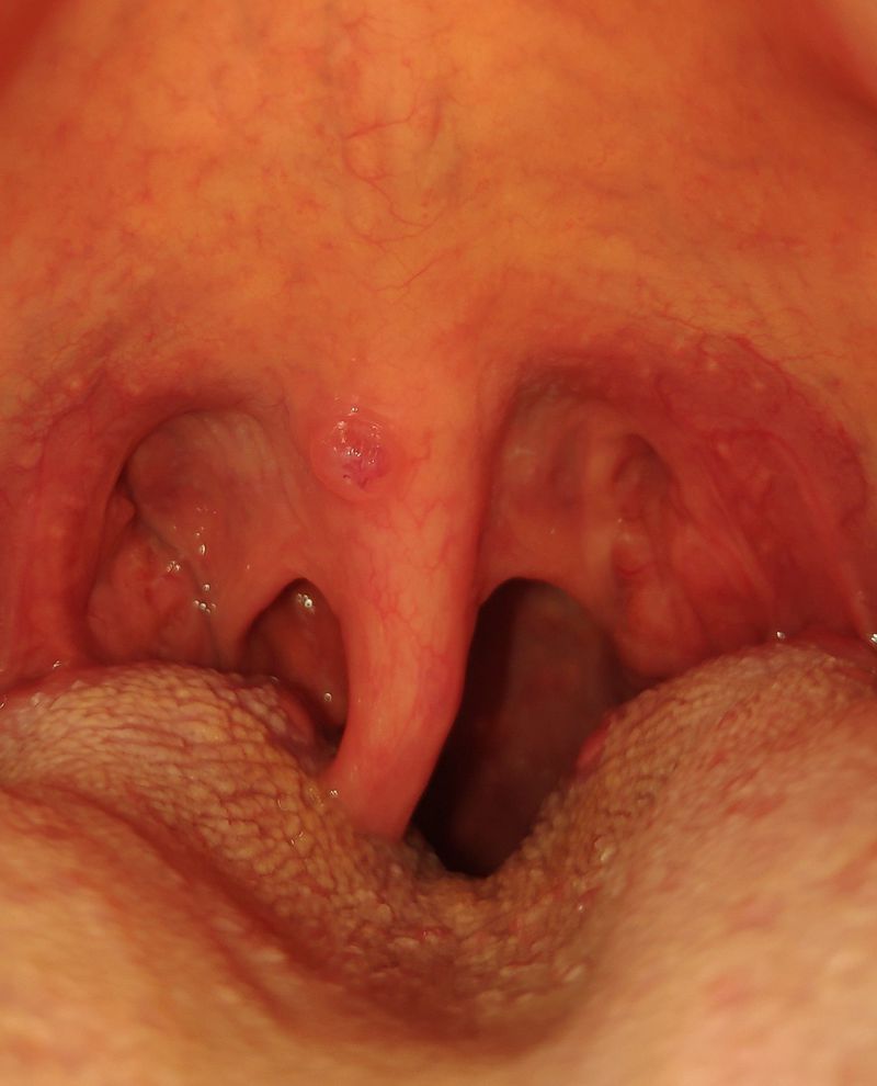 Any recent history of oral sex? It looks like there is a sore just above the uvula.