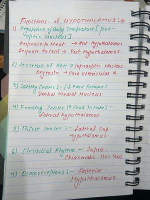 Function of hypothalamus)
