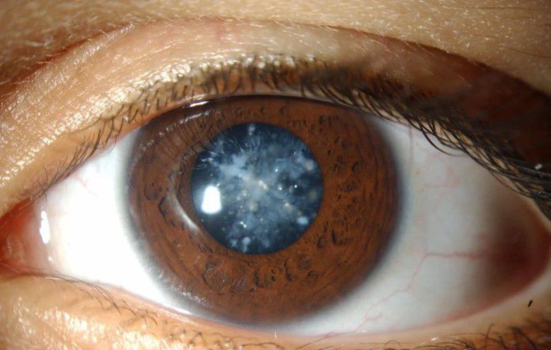 Glucose is reduced to Sorbitol (hygroscopic substance) by Aldolase reductase enzyme. Sorbitol is dehydrogenated to fructose by Sorbitol dehydrogenase enzyme. Since most cells in our body do not have Sorbitol dehydrogenase,in diabetes(when glucose level is increased) Sorbitol gets accumulated in cells, especially lens. Since Sorbitol is a hygroscopic substance, it leads to formation of cataract which is like a ❄