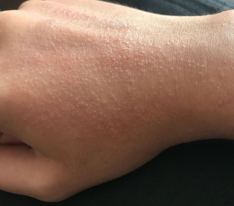Kontakt dermatit olmuş gibi, sebebini bulman zor olabilir, antihistaminikli bir krem ve çok kaşıntı/yanma varsa anestezikli bir krem yeterli olur. Geçmiş olsun.