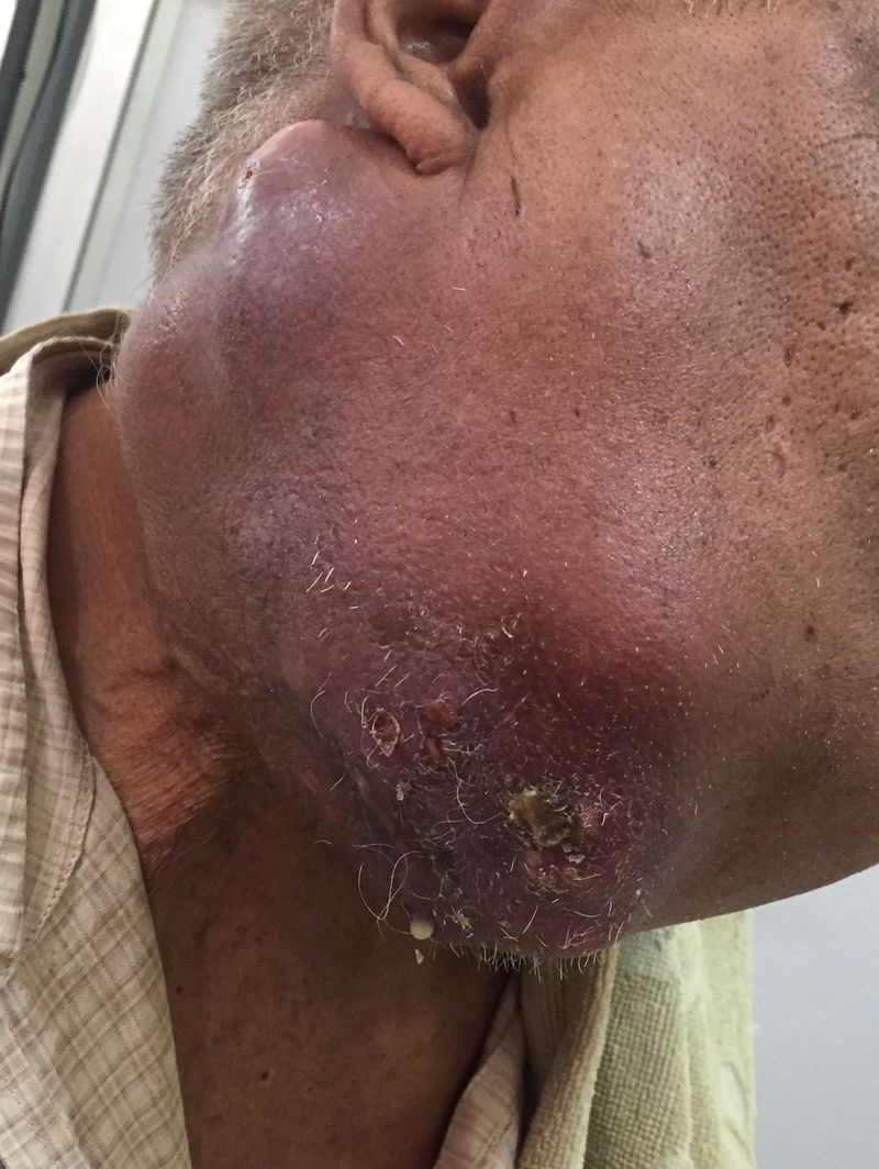 It looks like a skin metastasis of an internal cancer ( maybe lung)...