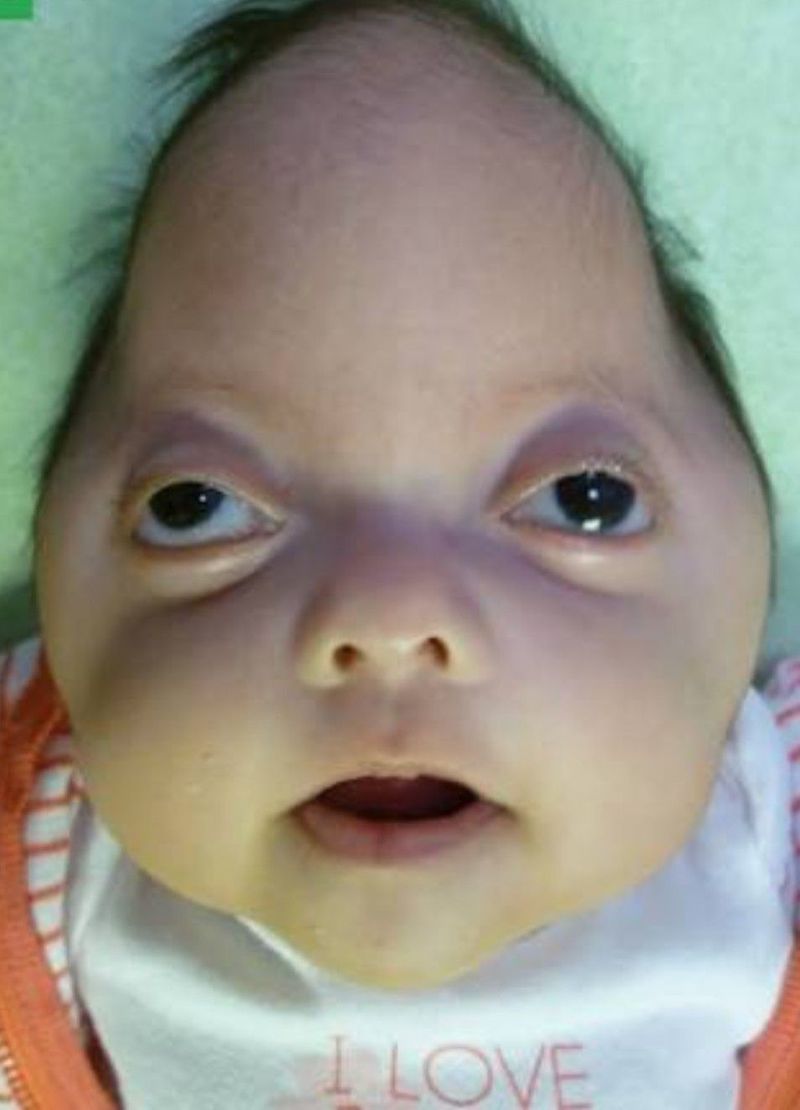 Premature closure of coronal and lambdoid sutures. Wide variation in initial detection of craniostenosis. Usually well developed by 19-22 weeks but there are reports of the deformity not evident until the third trimester.Bulging of the temporal bones and confluence of the anterior and posterior fontanelles.Expansion of the anterior cranial fossa superiorly.Expansion of middle cranial fossa laterally forming two bulges.