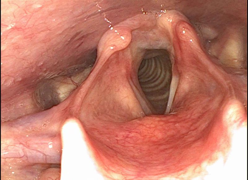 Male 18 yrs old, mothers refer years with dysphonia for long time, no complaint of dysphagia or dyspnea, moreover she refers hypoxia at birth so the boy developed intellectual functioning and behavior defects, stil present nowadays. At the laryngoscopy he seems to have the right vocal cord hypotrofic. Any thoughts/diagnosis?