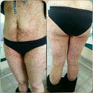 A 38 y.o. woman presented with severe maculopapular itchy rash leaving hyperpigmentated patches, developing it for the first time when she was 25 y.o. She has taken antihistamines to relieve itching and flushing of the skin. ANA and dsDNA are negative. Skin biopsy was made, confirming maculopapular cutaneous mastocytosis. What is your treatment sugestions? What are your comments?