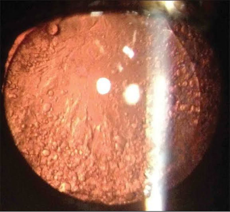 This variety of aftercataract occurs typically in eyes with very little or no postoperative inflammation. It is due to random proliferation of the cells which produce lens fibres, along the posterior capsule.These aborted lens fibres glisten like precious stones in retroillumination