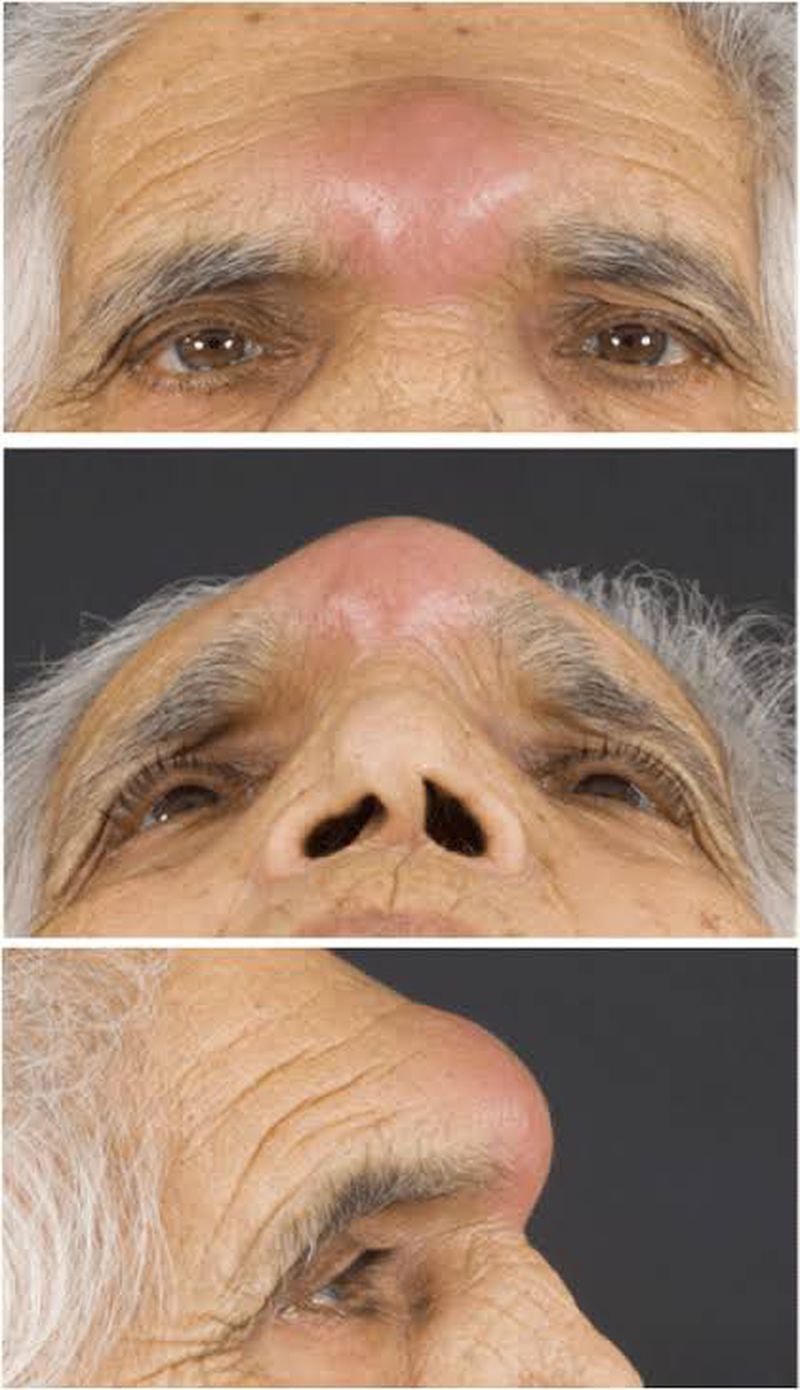 Inflammation not a tumor In frontal air sinus due to osteomyelitis that may erode frontal bone. It may rupture and lead to fistula