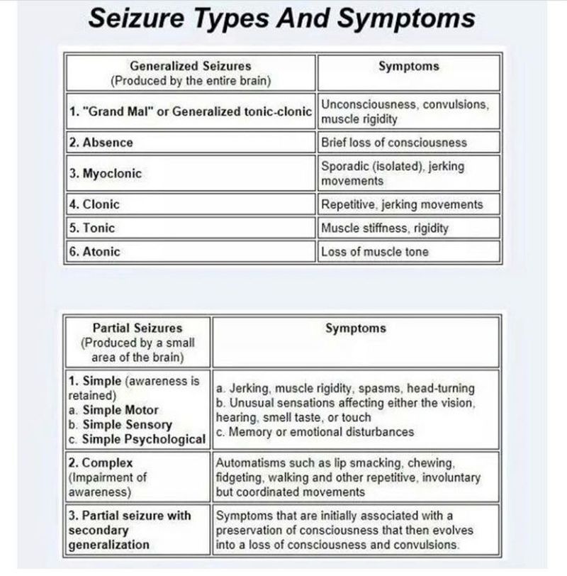Types and symptoms of seizures