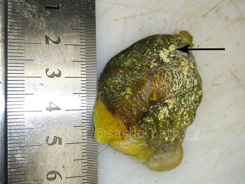 Strawberry gallbladder, more formally cholesterolosis of the gallbladder and gallbladder cholesterolosis, is a change in the gallbladder wall due to excess cholesterol. Typically stippled appearance of the mucosal surface on gross examination, which resembles a strawberry. Cholesterolosis results from abnormal deposits of cholesterol esters in macrophages within the lamina propria (foam cells) and in mucosal epithelium. The gallbladder may be affected in a patchy localized form or in a diffuse form. The diffuse form macroscopically appears as a bright red mucosa with yellow mottling (due to lipid), hence the term strawberry gallbladder. It is not tied to cholelithiasis (gallstones) or cholecystitis (inflammation of the gallbladder).