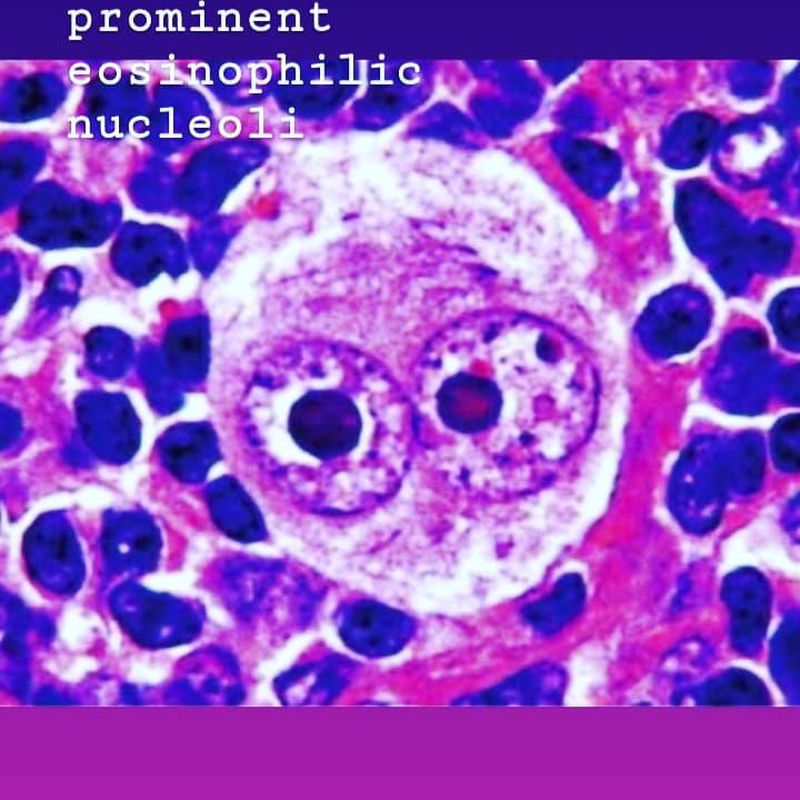Reed–Sternberg cells (also known as lacunar histiocytes for certain types) are distinctive, giant cells found with light microscopy in biopsies from individuals with Hodgkin's lymphoma ( Hodgkin's disease, a type of lymphoma). They are usually derived from B lymphocytes, classically considered crippled germinal center B cells, meaning they have not undergone hypermutation to express their antibody. Seen against a sea of B cells, they give the tissue a moth-eaten appearance