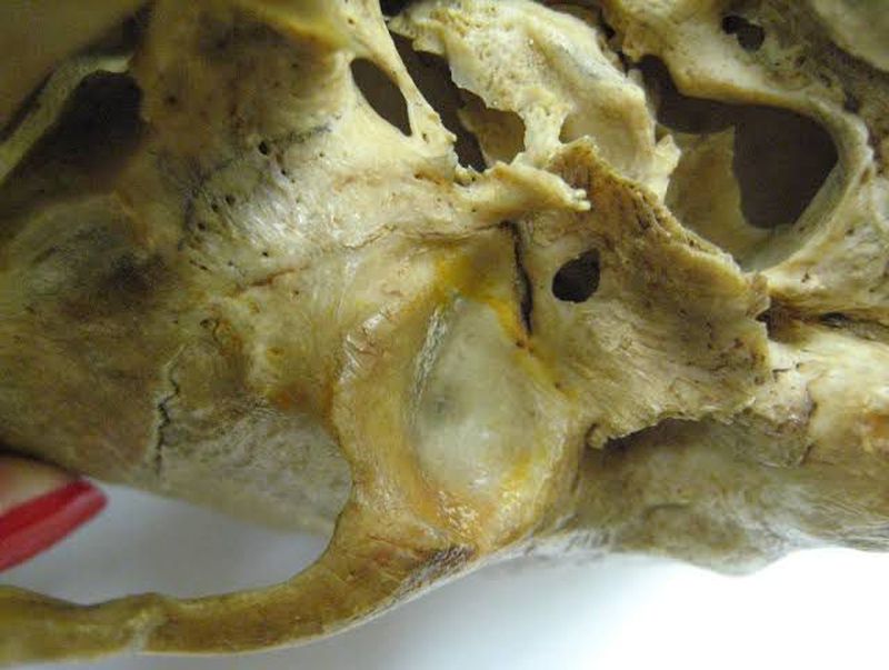 The foramen tympanicum, or also known as the foramen of Huschke, is an anatomical variation of the tympanic part of the temporal bone in humans resulting from a defect in normal ossification during the first five years of life. Persistence of the foramen tympanicum may also predispose the individual to the spread of infection or tumor from the external auditory canal to the infratemporal fossa or vice versa. It is associated with herniation of soft tissues from the temporomandibular joint into the external auditory meatus, and with formation of fistula between the parotid gland and the external auditory canal. During arthroscopy of the temporomandibular joint, the endoscope may inadvertently pass into the joint via the foramen, with resulting damage