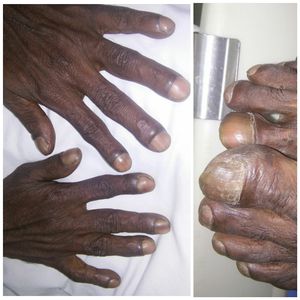 A 70-year-old man presents with difficulty walking, particularly when turning, and a sensation of his feet being "stuck" to the floor. His gait is characterized by hesitation and freezing when initiating steps. Which of the following is most likely to be observed in this patient? A. Spasticity B. Foot drop C.Freezing of gait D. Romberg sign