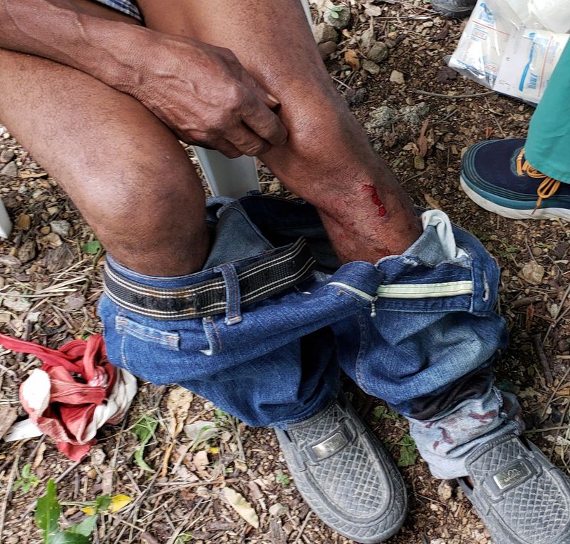 Machete injury. Small cut, lots of blood.