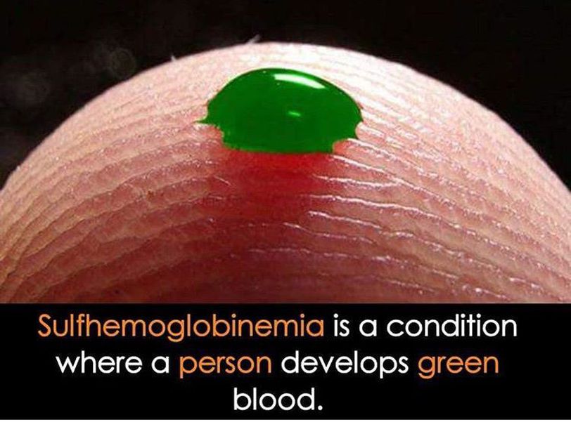 There is an abmornal amount of sulfHb which is green and the body can not convert it back to red.