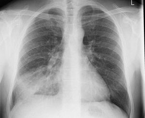 Right costophrenic angle is clear.. no fluid so not pleural effusion...Shadow indicating pnumonitis....associated rib fracture...oblique view to rule out fracture rib..